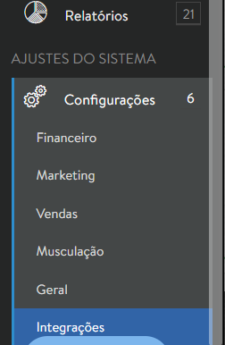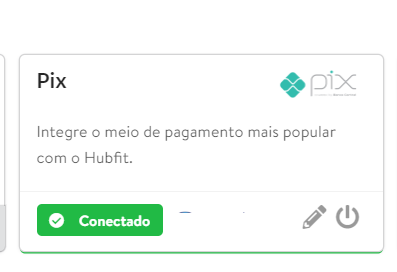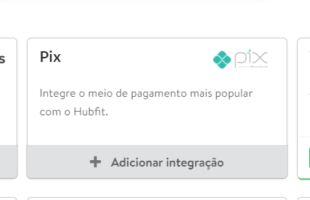 Agora dentro do Hubfit, acesse o menu Configurações / Integrações, e clique no card do PIX.