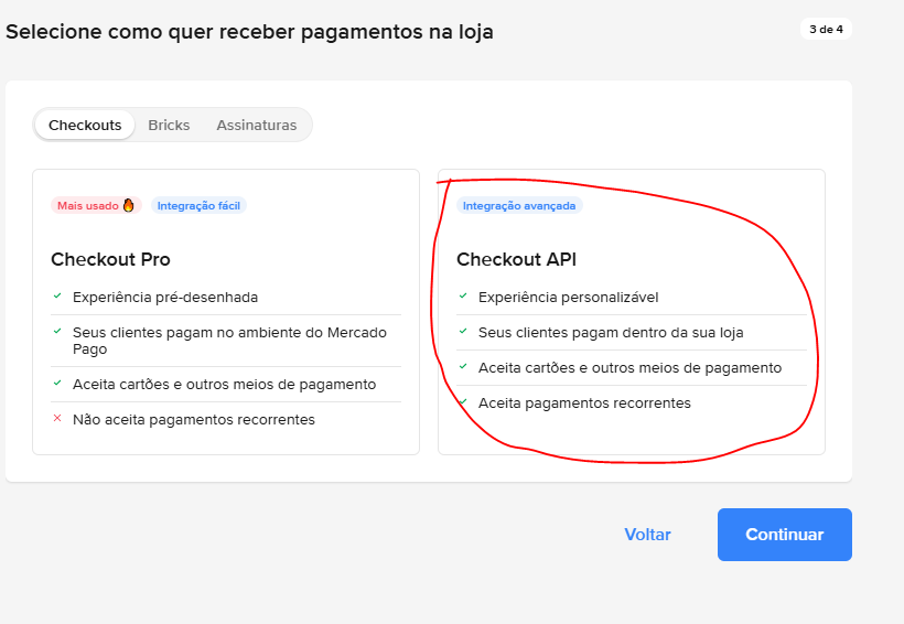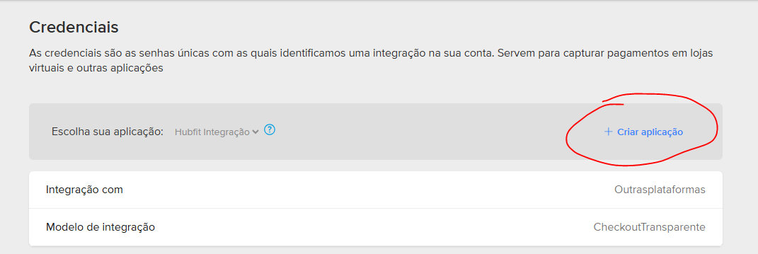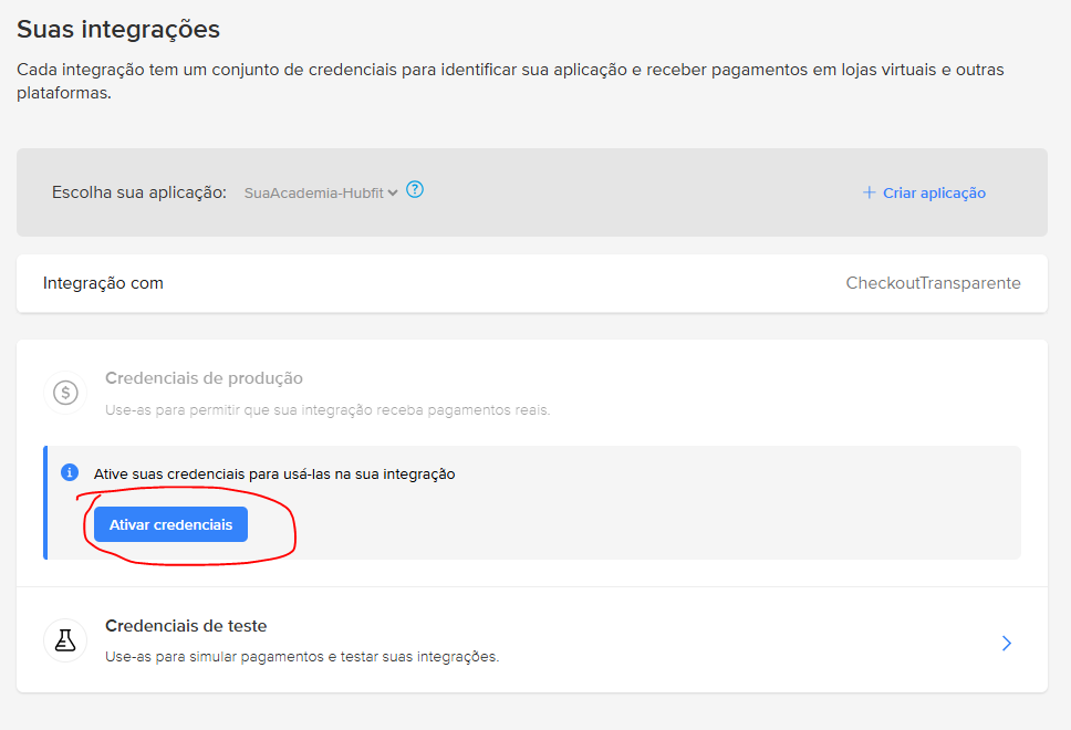 Nesta etapa você vai criar um APP para que o Mercado Pago possa gerar as credenciais de acesso ao Hubfit.