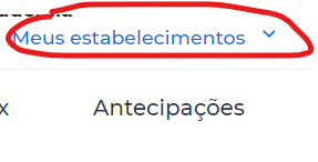 Após acessar o portal da Cielo, verifique se precisa filtrar algum estabelecimento, para que no relatório contenha apenas informações da unidade em que vai conciliar. A opção de filtro fica em Meus Estabelecimentos.