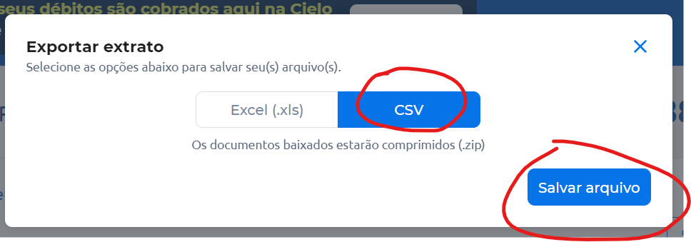 Clique na opção de CSV e depois em Baixar.