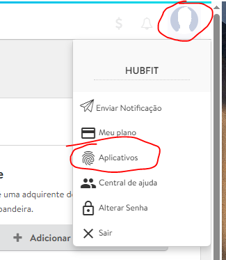 Após acessar seu link, clique na sua foto no canto direito e vá em Aplicativos.